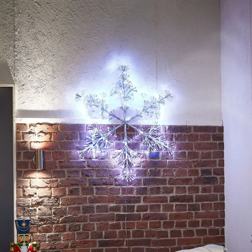 Proudly standing at 100cm tall, this starburst Christmas snowflake boasts 528 cool white LED lights, including 462 steady on lights and 66 flashing bulbs. These energy-efficient LED bulbs are expected to last for up to 50,000 hours and will therefore brighten up your home for many Christmases to come.