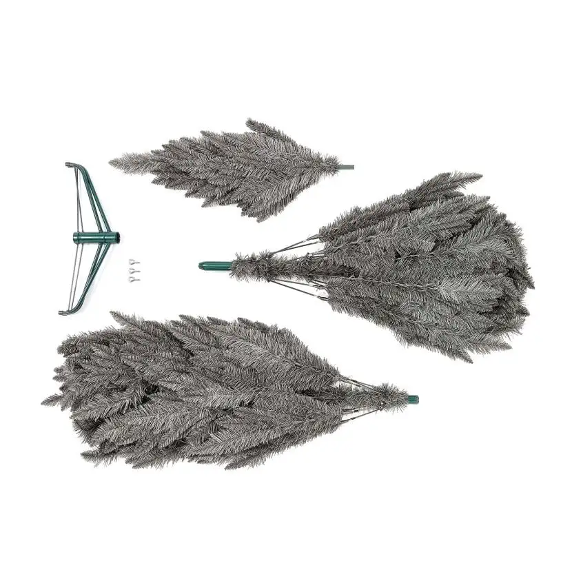 This tree features a 3-part hinged design which offers much easier assembly and dis-assembly over a hooked design. Simply connect the base and pole, unfold the branches and re-position them to your liking.