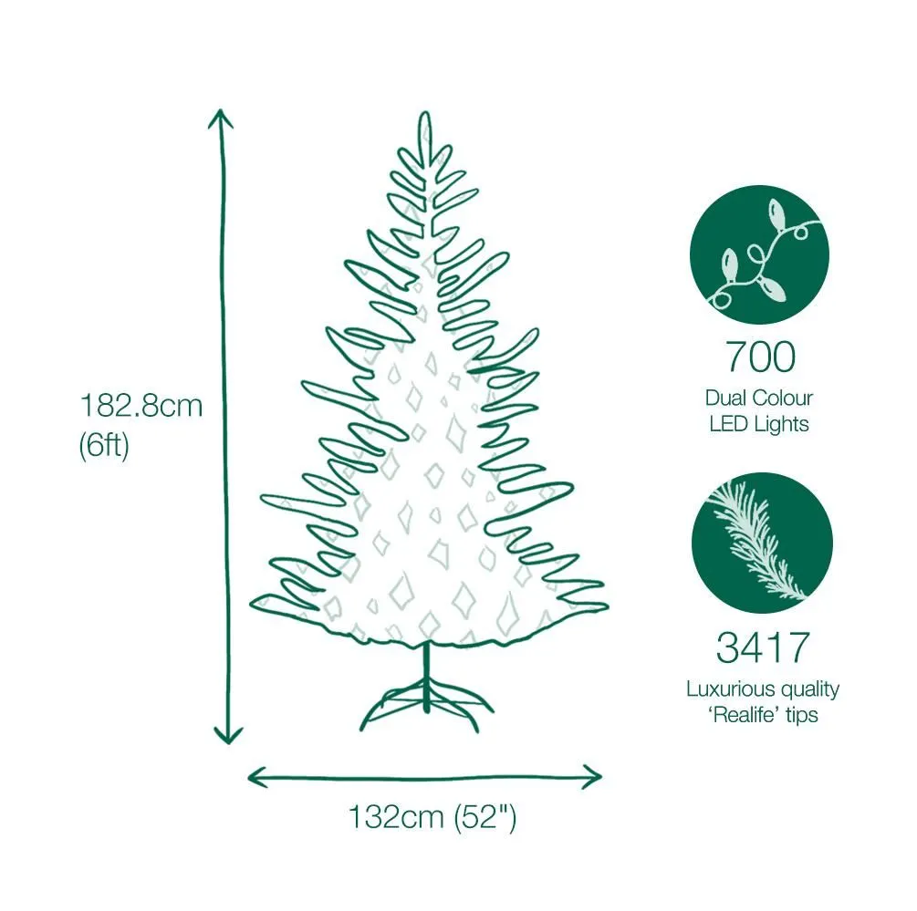 The 6ft Pre-lit Barrington Spruce has everything you need for an eye-catching display this festive season. With 700 Multi Functional Dual Colour LED lights woven through its branches. You can change the mood from white to multi-coloured lights using a convenient foot switch. You have a choice of 8 functions. Please see the Features Tab.