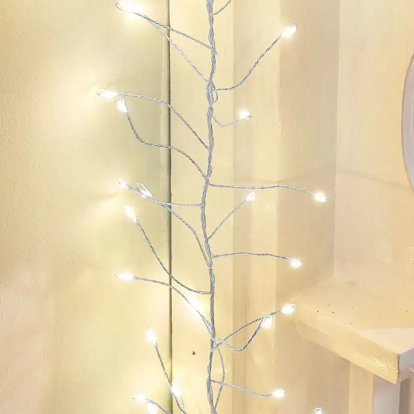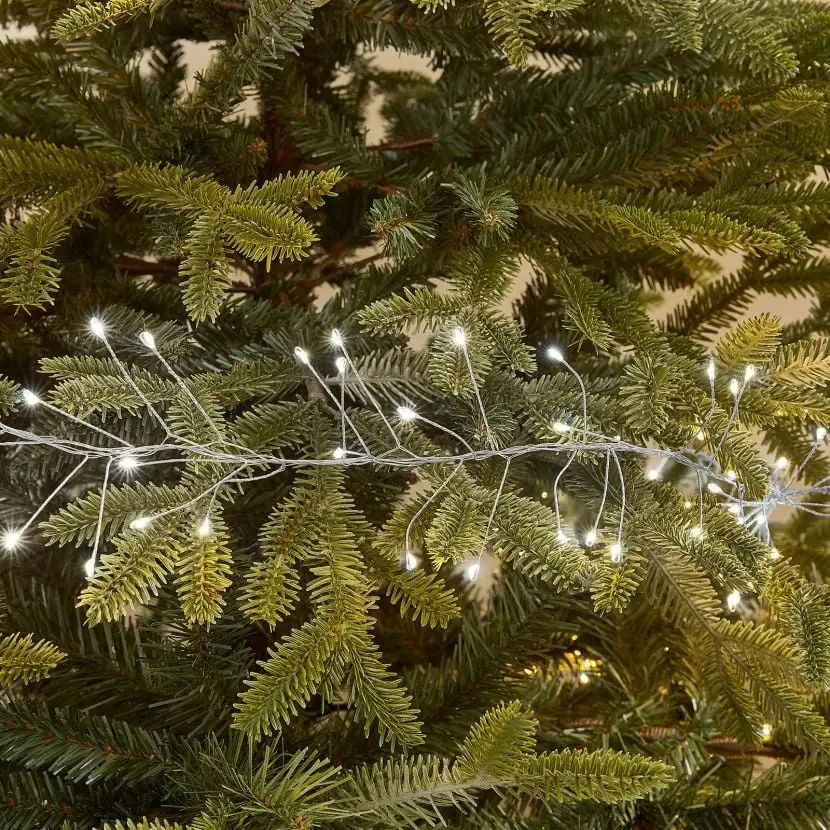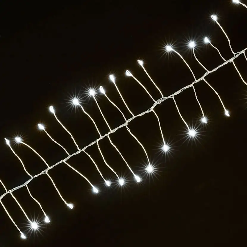 TThese The Winter Workshop – 720 Micro LED Cool White Silver Wire Christmas Pin Wire Cluster Lights would make the perfect addition to any Christmas tree or table decor.
