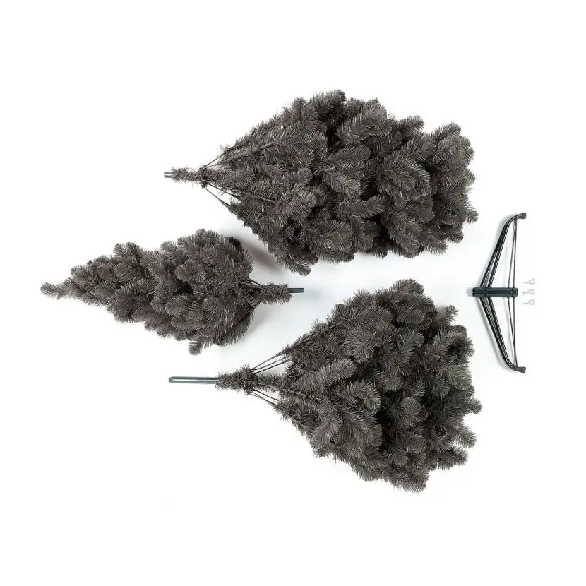 This tree features a 3-part hinged design which offers much easier assembly and dis-assembly over a hooked design. Simply connect the base and pole, unfold the branches and re-position them to your liking.
