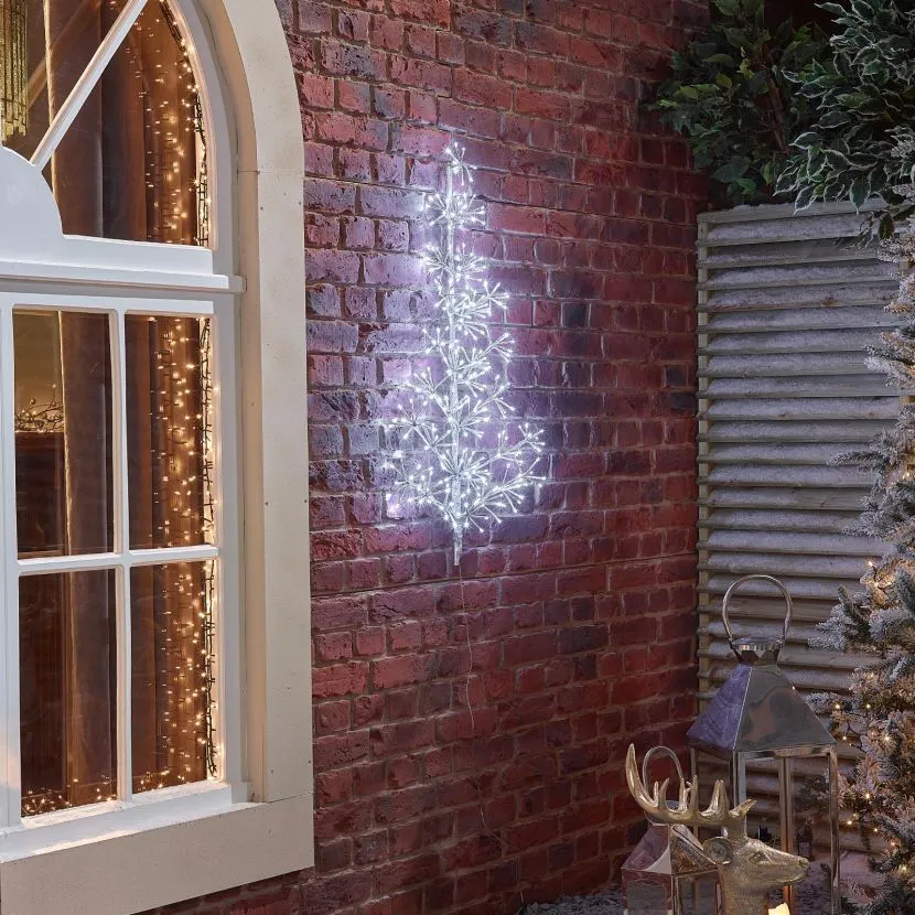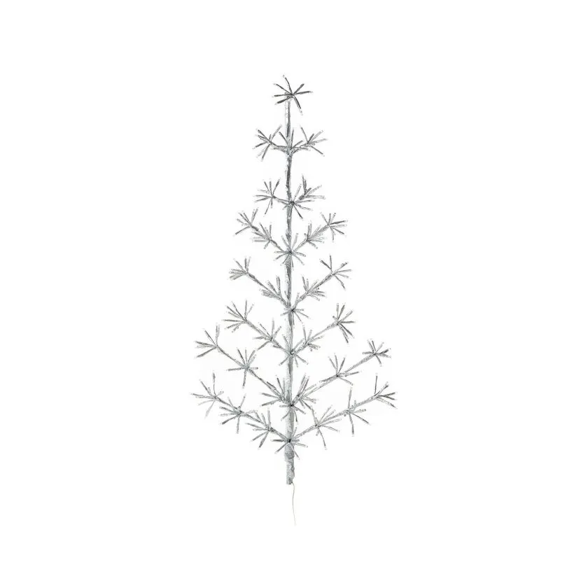 Proudly standing at 90cm tall, this strong wire starburst Christmas tree with silver tape boasts 296 cool white LED lights, including 259 steady on lights and 37 flashing bulbs. These energy-efficient LED bulbs are expected to last for up to 50,000 hours and will therefore brighten up your home for many Christmases to come.