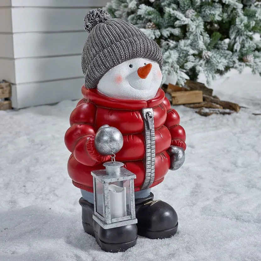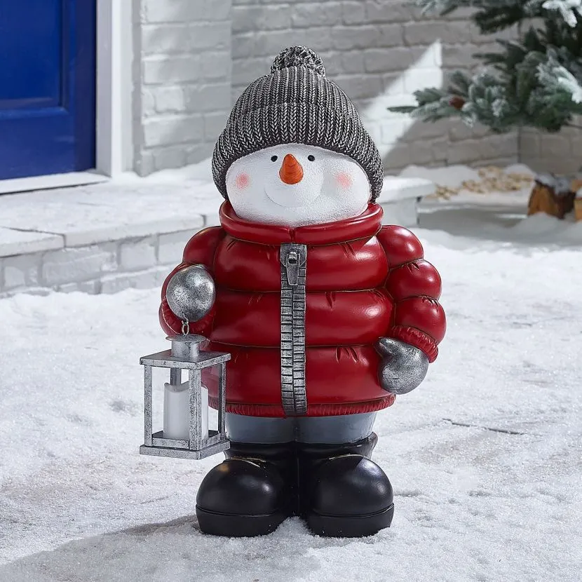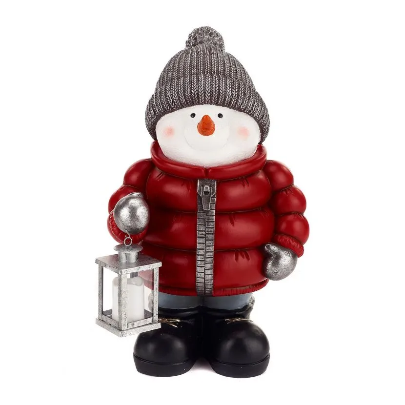 This great figure would look wonderful next to a fireplace or by your front door. This magical snowman is a fun and interesting character that is sure to impress friends, family and neighbours. With his postbox red coat, warming hat and LED lantern, Berry can add a touch of light to your display. The battery operated lantern requires 2 x AAA batteries (not included) and though Berry is suitable for outdoor use we recommend he is kept under cover in order to protect the battery pack.