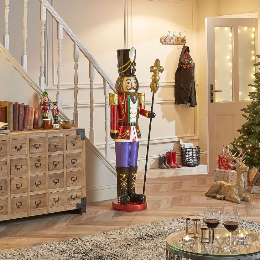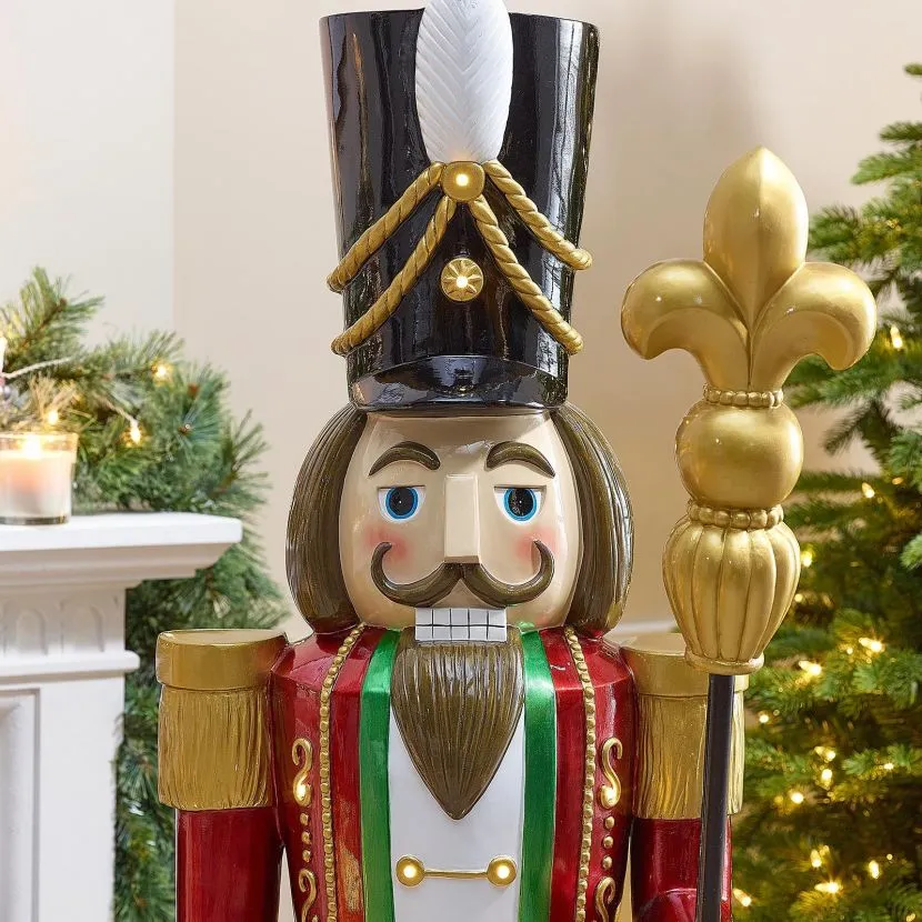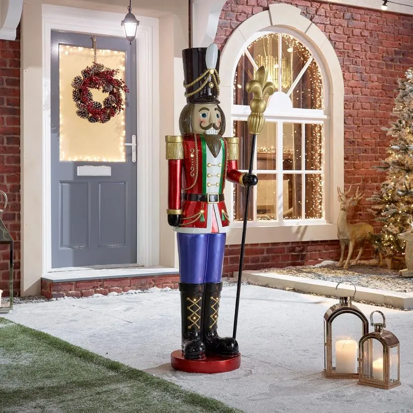 Based on the popular German wooden crafted Nutcrackers, this modern replica is made from a durable polyresin so that it can be used for both indoor or outdoor use. This brilliant figure would look great next to your fireplace or guarding your front door.